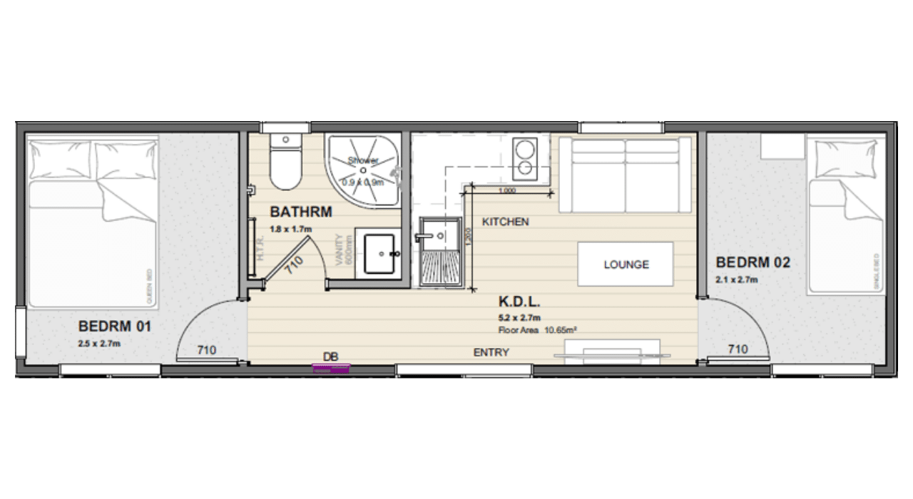 Cabin Size 10.2m x 2.9m (29.5 sqm)
